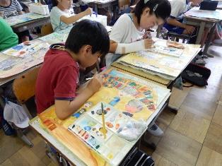 授業の様子 その3 投稿日時 : 2016/07/13 豊春小 カテゴリ: 4年生は図工の授業で、給食を作っている様子を描いています。白衣を着て、マスクをして、帽子で髪の毛をすっぽりカバーしているのが分かりますね。6年生は図工の授業で、彩色をしています。細かな部分もとても丁寧に塗っていきます。5年生は社会の時間で、テストに取り組んでいます。覚えているかな?