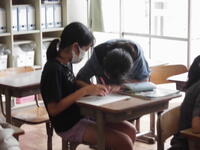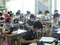 静かな環境の中での集中した毛筆、グループでの話し合いの結果発表、ペアでの教え合い、顕微鏡での観察、タブレットを活用しての様々な教科の学習、自分の思いを絵に表す、歌や演奏、水泳学習など、とてもよい学習環境の中で学習が進められています。