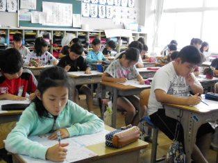 授業の様子 投稿日時 : 2015/07/06 豊春小 カテゴリ: 1年生国語「おおきなかぶ」の練習の様子です。5年生は、理科のテストを行っていました。結果はどうなるでしょうか。3年生は、国語で漢字の練習をしていました。3年生が習う漢字は、200字で、3年生までに習う漢字は、440字です。6年生は、算数の授業で、三角柱と円柱の体積の求め方を考えていました。4年生は、国語のテストを行っていました。みんな、真剣に考えています。