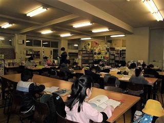 図書室では、教員が交代で子どもたちの学習を見守り、12時近くになると、学童保育室へ行く子どもたちを送っていきます。