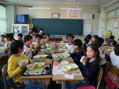 本日の給食 投稿日時 : 2018/04/12 豊春小 カテゴリ: ごはん、鶏肉のねぎみそ焼き、春キャベツのお浸し、肉じゃが大きな鍋にたくさん肉じゃがができています。ダイナミックです。美味しい給食を教室でいただく4年生の子どもたちです。写真を撮ってほしいとのPRもしていました。