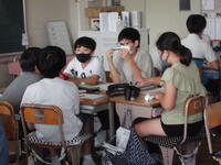 国語では全員で主人公の気持ちを話し合ったり、自分の考えをノートに丁寧に書いたりしています。書写では集中して文字を書いています。算数では時間の学習、社会では安全マップ作り、音楽では鍵盤ハーモニカ、体育ではマット運動を頑張っています。タブレットを活用したり、グループで話し合ったりする学習も積極的に行っています。
