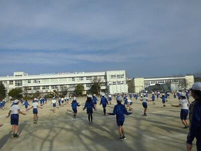 【体育朝会 2・4・5年】来週のなわとび大会に向けて、短縄時間跳びを行いました。