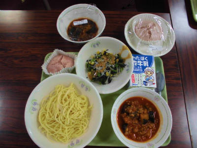 きょうの給食 投稿日時 : 2019/06/19 豊春小 カテゴリ: パスタ、春日部野菜のボロネーゼ風パスタソース、鉄骨サラダ、いちご蒸しパン、粉チーズ除去のパスタソース、牛乳除去のいちご蒸しパン5-3と1-3は交流給食です。ランチルームでいただきました。フリードリンクの牛乳、コーヒー牛乳、りんごジュース、ぶどうジュース、オレンジジュースから選んでいただきました。