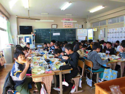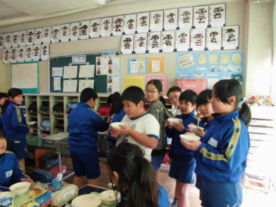 きょうも美味しい給食 投稿日時 : 2018/01/12 豊春小 カテゴリ: メニュー 黒パン、牛乳、マーマレードチキン、にんじんとコーンのグラッセ、クリームシチュー パンによく合う献立です。シチューで体もほかほかです。 4年生の教室からニコニコの子どもたちの様子です。 給食中も放送委員会の児童は大活躍。時間を知らせながら、学校を温かい雰囲気にしてくれます。