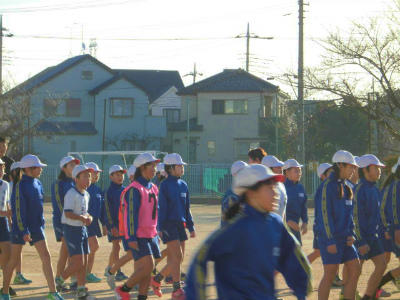 寒さに負けずさわやかタイム 投稿日時 : 2018/01/12 豊春小 カテゴリ: さわやかタイムは、運動委員代表児童の準備体操に合わせて、始まります。きょうは、ジャンプの運動後に3分間マラソンを行いました。高学年児童は、短距離走も行います。学年毎に集まり、きょうも元気に過ごそうと意識を高めます。