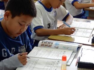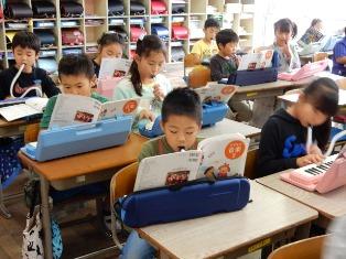 授業の様子 その2 投稿日時 : 2015/10/21 豊春小 カテゴリ: 2年生は音楽の授業で、鍵盤ハーモニカの練習をしています。説明をしているのは、2年生です。算数のかけ算九九の8の段を考えています。3年生は理科の授業で、鏡などで遊んだ光についてプリントで確認しています。