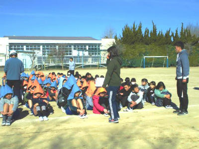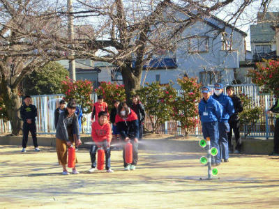 消火訓練も行いました。6年生代表者と代表の教員が行いました。消火器に触れていない子どももよく見て参加しました。