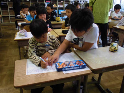 スマイル先生 投稿日時 : 2017/05/25 豊春小 カテゴリ: 本校独自の業前活動にチャレンジタイムがあります。チャレンジタイムは、国語・算数を中心に行っています。本日は、2,5年生がペアとなり、高学年が「スマイル先生」として、低学年の勉強を教えています。やさしく教えていました。