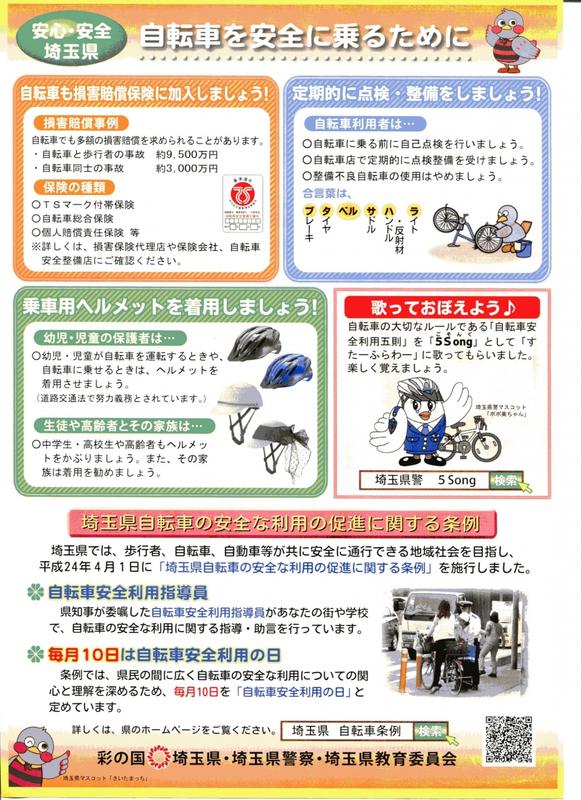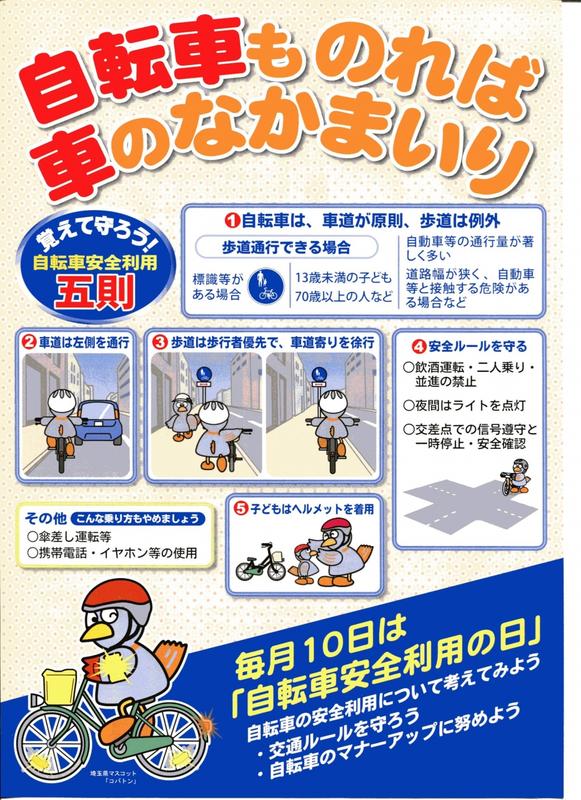 自転車安全利用五則、損害賠償事例(自転車と歩行者で9.500万円)等が書かれているので