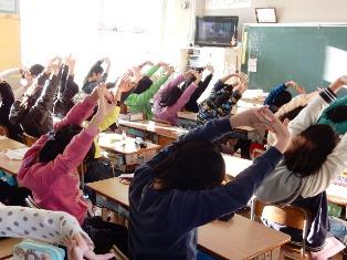 今日のさわやかタイムは、ストレッチ体操です。写真は、6年生です。