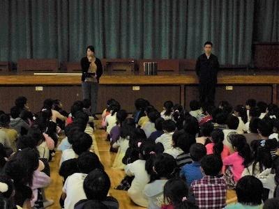 本日3校時に、不審者対応の避難訓練を行いました。これは、不審者が学校に侵入してきたときの対処や避難の方法を学ぶ訓練です。春日部警察署の方3名に来校していただきました。子どもたちは、大人の指示をしっかり聞いて、素早く動き対応することができていました。
