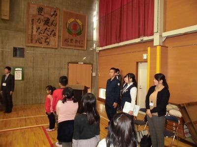 訓練終了後、数人の教員が警察署の方と振り返りも行いました。