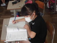 一人ずつ音読する、手を挙げて発言する、ノートに自分の考えを書く、集中して問題を解く、タブレットを活用して調べる、楽器を演奏する、自分の思いが表れるように絵に表したり、制作したりする、種とりをするなど、今日も子どもたちは生き生きと学んでいました。