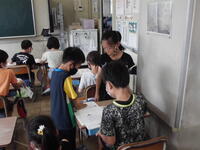 静かな雰囲気の中での毛筆、育てた作物の収穫や観察、植物を観察し絵や言葉に表す、歌や演奏、思いを表現する粘土制作、体を鍛えるかけ足、マット、鉄棒、水泳など充実した教育活動が今日も展開されています。