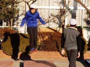 朝マラソン 投稿日時 : 2016/01/26 豊春小 カテゴリ: 朝マラソン前の縄跳びの練習が日課になっています。三重跳び、後ろ二重跳び、綾跳びの二重跳びなどなど。今日の低学年コースは、1年生がお休みで空いている分、2年生が元気に走っていました。元気に走っていました。