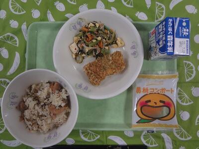 7月6日(木)本日の給食~7月生まれの誕生日給食&沖縄フェア~ 投稿日時 : 2023/07/06 豊春小学校管理者 カテゴリ: じゅーしー 牛乳 いかフライ ゴーヤチャンプルー お誕生日デザート(黄桃コンポート)