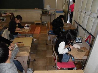 4年生の版画。上手に彫れています。これから掘り進みが楽しみです。