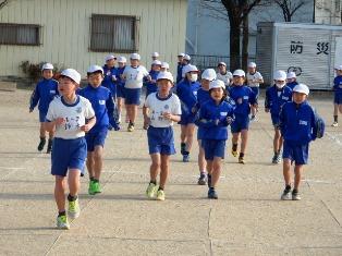 北風の冷たい朝でしたが、元気に走る子どもたちです。