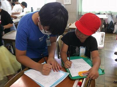 高学年の児童が積極的に低学年の児童に「名前を教えて。」と話しかけていました。