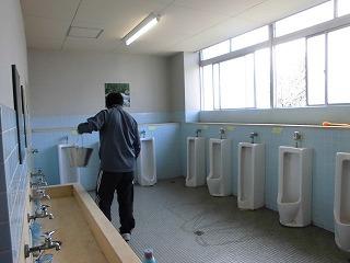 先生たちは分担して、きょうはトイレを掃除しました。豊春小の子どもたちが掃除をしている時間と同じ時に、一つのトイレを一人ずつできれいにしました。
