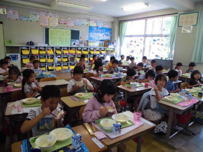満腹!給食 投稿日時 : 2018/05/21 豊春小 カテゴリ: 献立 かやくごはん、キャベツたっぷりふわふわお好み焼き、アスパラのさっぱり和え誕生日ケーキ、豆乳パンナコッタ アレルギー対応は、山芋、卵、マヨネーズ抜きお好み焼き給食を美味しくいただいている1年生の様子です。
