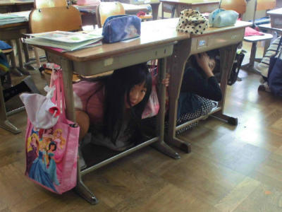 3年:算数の授業でしたが、「春日部市防災無線による緊急地震放送」があり、すぐに机の下に身を守りました。素早い動きでびっくりしました。