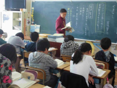 6年国語:「やまなし」で教師の範読を聞きながら、内容を読み取っています。