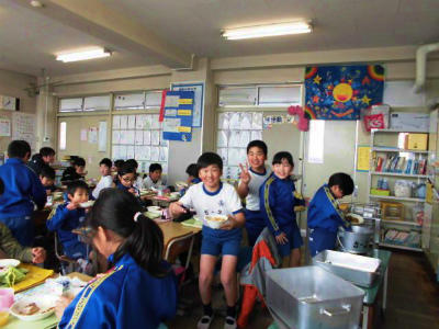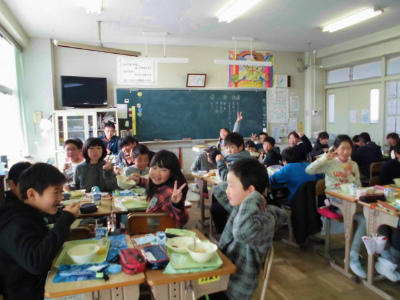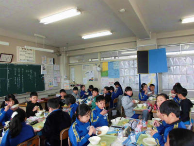 栄養バランスよくきょうも美味しくいただきました 投稿日時 : 2018/01/15 豊春小 カテゴリ: こぎつねごはん、牛乳、ぶりの照り焼き、昆布の煮付け、オレンジゼリー5年生の教室の様子と、昼も給食をいただきながら放送委員の仕事をする高学年の子どもたちの様子です。