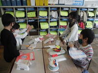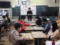 学級会での話し合い、自分の作品の発表、ペでの英語学習、図工作品の鑑賞会の様子です。
