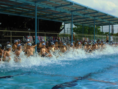 5年プール学習 投稿日時 : 2017/06/06 豊春小 カテゴリ: 5年生が、6校時に本校最初のプール学習を行いました。となりの子に水をかけています。思いっきり、やさしく・・・水しぶきがあがっています。早く入りたい気持ちいっぱいです。慣れの学習が終了し、自由時間となりました。教師と一緒に、友だちと一緒に楽しんでいました。