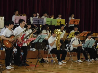 音楽鑑賞会 投稿日時 : 2019/06/14 豊春小 カテゴリ: 本日3,4校時音楽鑑賞会がありました。1~3年生の豊春っ子たちが、校歌やディズニーのアラジンなどの曲に、手拍子を送ったり、体を動かしながらリズムを取ったりして、とても楽しく音楽に親しむことができました。共栄大学ジャズサークルの皆さんありがとうございました。