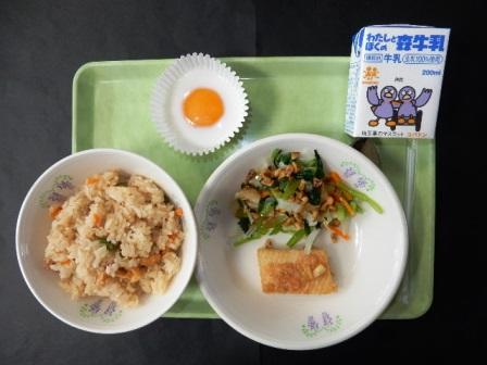 本日の給食 投稿日時 : 2016/06/29 豊春小 カテゴリ: こぎつねごはん、いかのねぎみそ焼き、くるみあえ、目玉焼き風もも入りミルクゼリー、牛乳です。見た目は、まさに目玉焼きですが、美味しいデザートです。