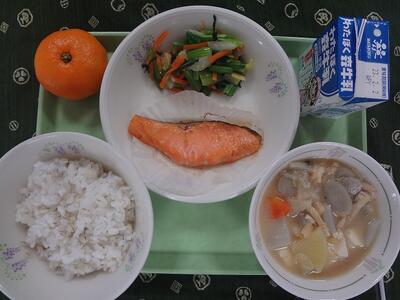 1月24日(火)本日の給食 「タイムスリップ給食」給食が初めて提供された際の献立になぞらえたメニューです。 投稿日時 : 2023/01/24 豊春小学校管理者 カテゴリ: 麦ごはん 牛乳 鮭の塩焼き おひたし みそけんちん汁 みかん