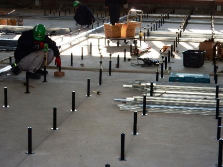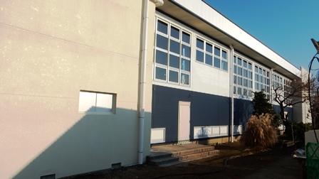 体育館の耐震工事は、足場が完全に外されました。体育館の中では、床を張る