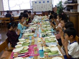 本日の給食 交流給食 投稿日時 : 2016/05/30 豊春小 カテゴリ: ごはん、ぎせい豆腐、磯香あえ、肉じゃが、牛乳です。交流給食のクラスは、牛乳がりんごジュースになります。6年1組と3年1組の交流給食の様子です。6年生が手際よく準備をしていました。さすがですね。みんなで楽しく美味しくいただきました。おかわりもお互いに分け合って。