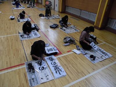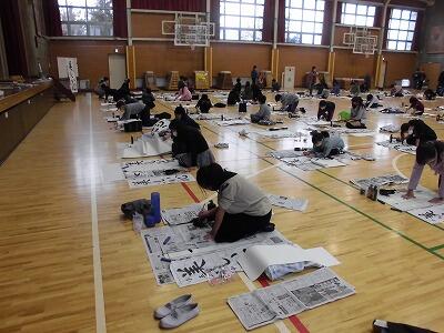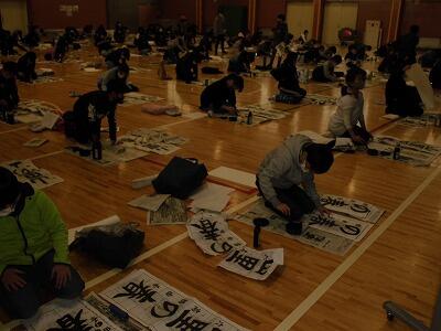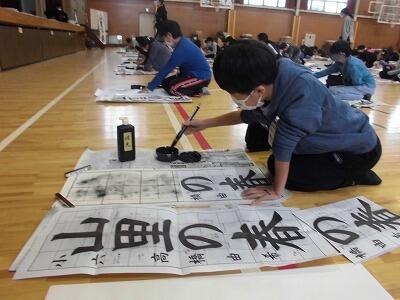 6年生は、小学校最後の競書会です。しっかり練習をし、この日のために頑張っていました。一字一字きちんとにじまないように拭き取りながら、誰もしゃべらない緊張感の中で作品に一生懸命取り組んでいました。