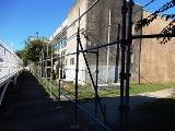 朝のうちはパイプのみだったのですが、高さ3mほどの塀がつきました。
