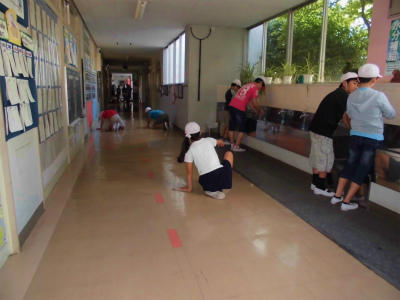 豊春小伝統の6年生の廊下拭きです。もくもくと拭いてくれています。