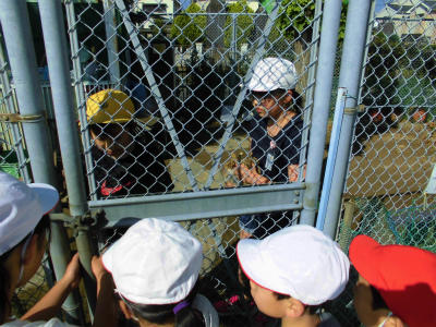 毎朝、飼育小屋(うさぎ)には、多くの子どもたちが群がっています。