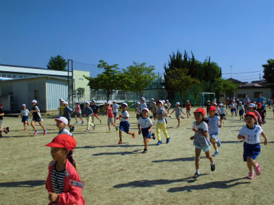 朝マラソンの様子です。1年生も元気いっぱい走っていました。