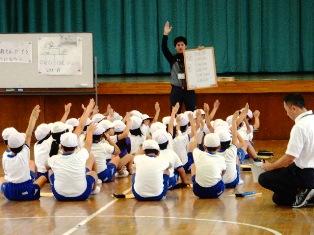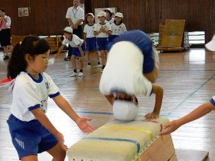 研究授業 投稿日時 : 2015/09/25 豊春小 カテゴリ: 3年2組で体育の研究授業が行われました。内容は、跳び箱の台上前転です。手の位置とか足の位置とか、跳び箱以外での練習とか、一人一人が課題意識をもって練習に取り組んでいました。「コツコツと きたえた体は たからもの」体をきたえる子どもたちです。