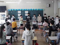 この2つのねらいの下、計画委員会を中心に1年生を迎える会を実施しました。1年生の教室の様子をリモートで、全教室に送りました。各教室では、代表者が1年生へプレゼントを送る姿に拍手をしたり、クイズに参加したりしました。とてもあたたかい会となりました。