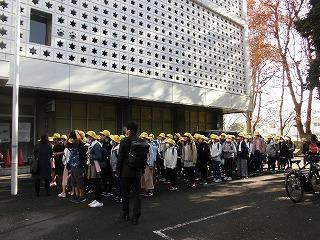 科学技術館到着。見学前に並び、入場券を受け取るところです。管内の使い方についてのお話も伺いました。