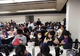 科学技術館でお弁当をいただいているところです。おうちの方にご用意いただき、子どもたちはにこやかです。