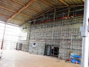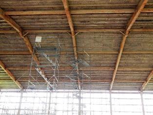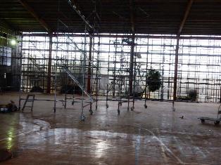体育館耐震工事 今朝の様子 投稿日時 : 2015/11/24 豊春小 カテゴリ: 防音のシートが外されましたが、外から中は見られません。許可をいただき、内部を見せていただきました。プール側を見ています。天井です。入口側を見ています。ステージ側を見ています。ステージ側は、ステージの床を残して、壁が取り払われていました。