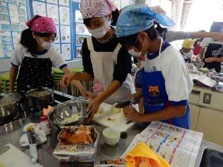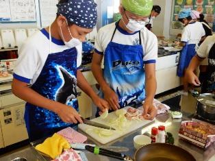 6年生の家庭科は、調理実習です。何となくぎこちない手つきで、