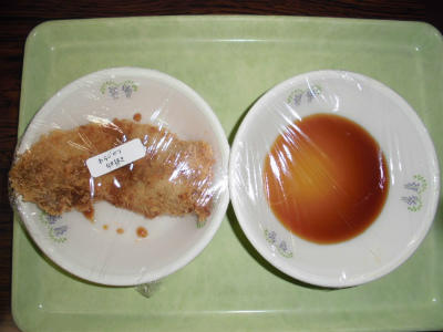 除去食は,卵抜きのわらじかつ、白ごま除去の和えものです。