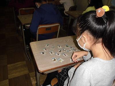 英語の時間は、カードを使って英語に親しむ授業を展開しています。子ども達はとても楽しみながら英語に触れています。