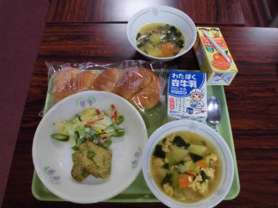 給食 交流給食 歯みがき 投稿日時 : 2018/06/11 豊春小 カテゴリ: ツイストパン、牛乳、ハーブチキン、アスパラサラダ、洋風かき玉スープ卵抜きのスープ 交流給食の1-3と5-3はみかんジュースランチルームで美味しくいただきました。5年生が1年生の片付けを見届ける姿も見られました。正しい歯みがきの仕方を6年生も学び直しました。鏡を見たり、お互いに歯を見せ合ったりしながら確認しています。